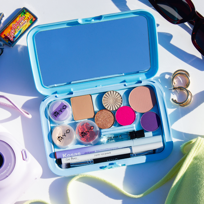 Travel easier and makeup faster! Eco-conscious MYO Cosmetic Cases make it easy for you to organize your essentials without the overflowing makeup bag. A customizable, refillable and reusable Travel Makeup Case that holds multiple types of makeup: pan, powder, liners and liquids. A case that's already coveted by Professional Makeup Artists globally!