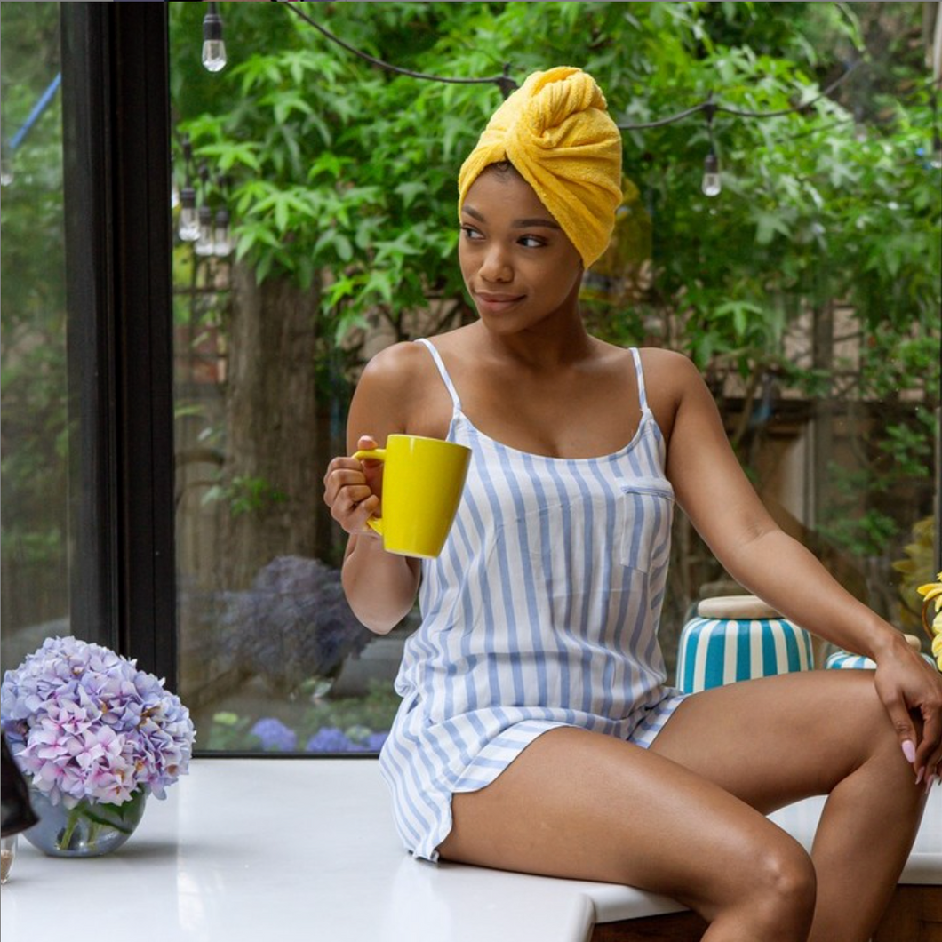 Turbie Twist® is the original super-absorbent hair towel that stays in place. It features a unique tapered design that allows for a perfect fit on all head-sizes.